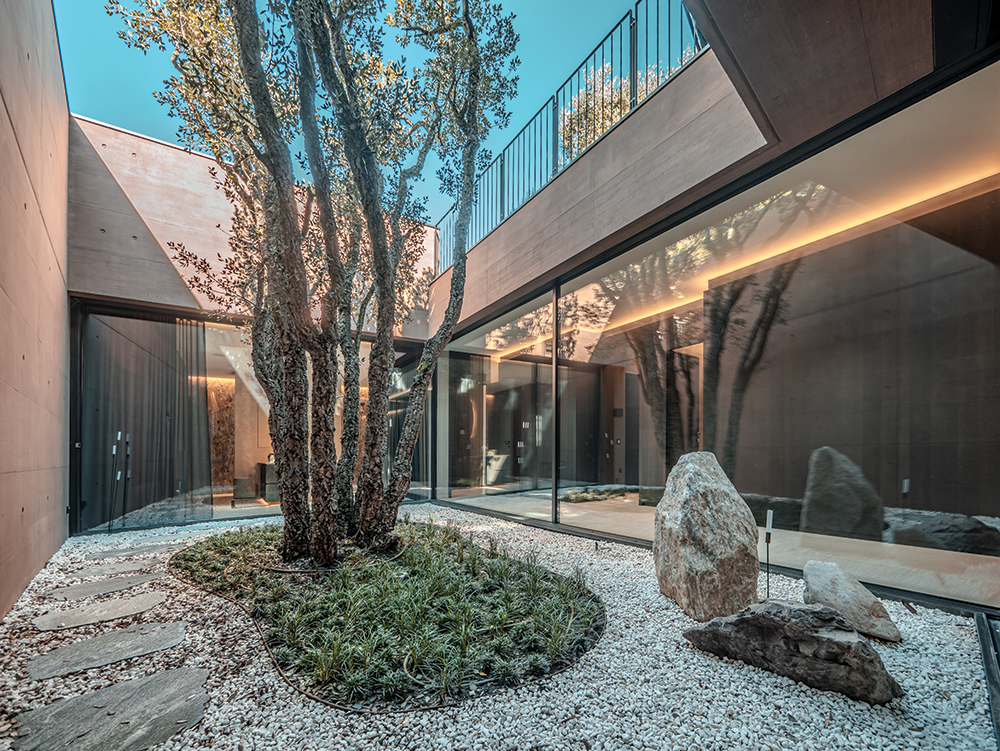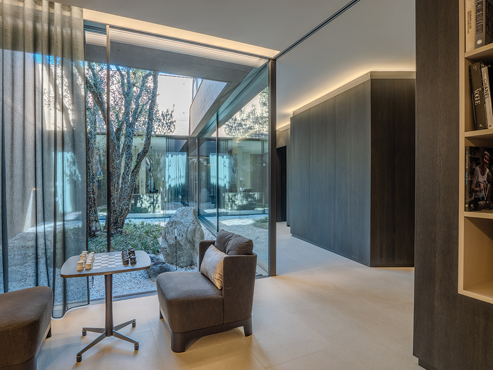 The basement, on the other hand, is the most private part of the villa, with rooms arranged around a large, spectacular courtyard, confirming the fusion between indoor and outdoor spaces.